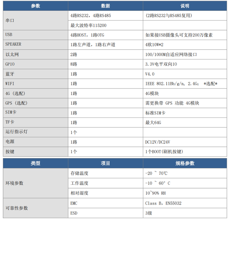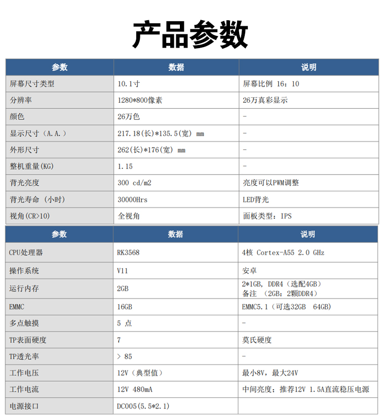 - 参数规格表
